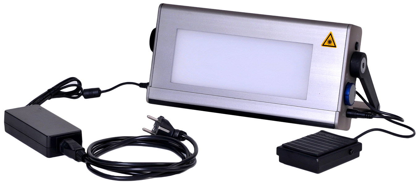 Негатоскоп KOWOLUX M в комплекте с отдельным блоком питания, ножным переключателем, рабочим выключателем, сертификатом испытаний в соответствии с ASTM E 1390, ISO 5580, DIN EN 25580 и сертификат соответствия согласно ISO/IEC 17050-1