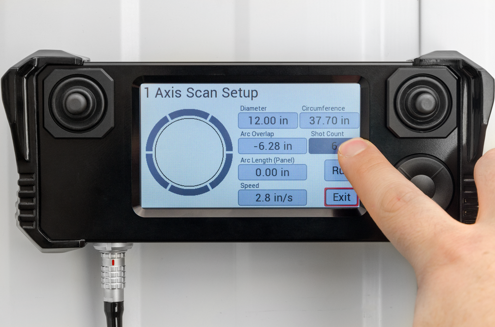 Встроенное программное обеспечение позволяет пользователям программировать определенные шаблоны сканирования вокруг трубы. Введите диаметр трубы и количество снимков, которые нужно сделать, и программа рассчитает необходимые интервалы. Скорость и другие переменные также доступны для настройки проверки по мере необходимости.