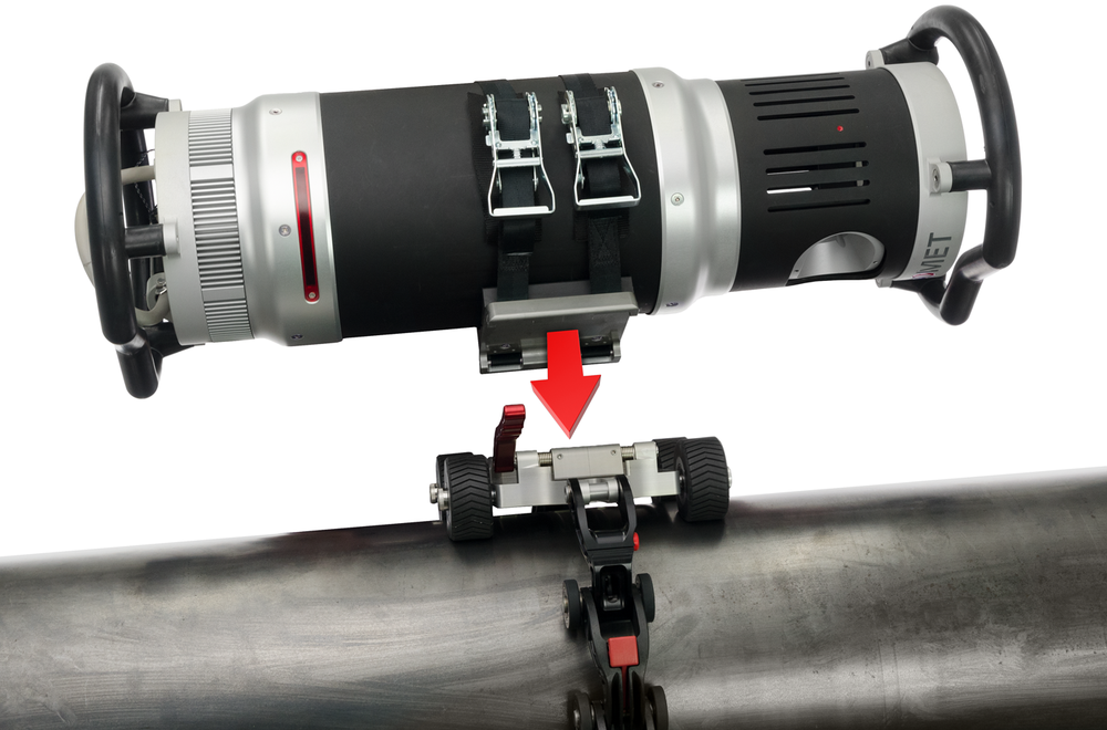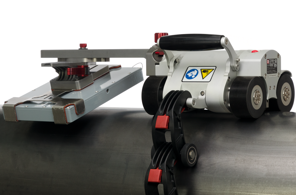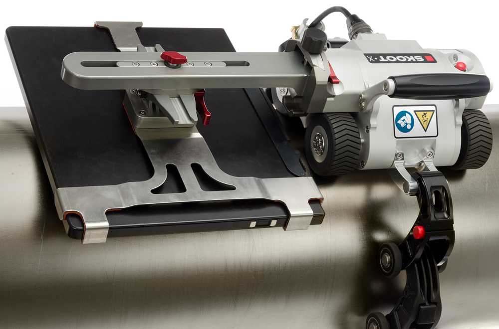 SKOOT X. Мощный гусеничный ход перемещает систему по окружности трубы. Кроулер SKOOT X также оснащен удобной ручкой, а кронштейн детектора крепится сбоку гусеничного робота.